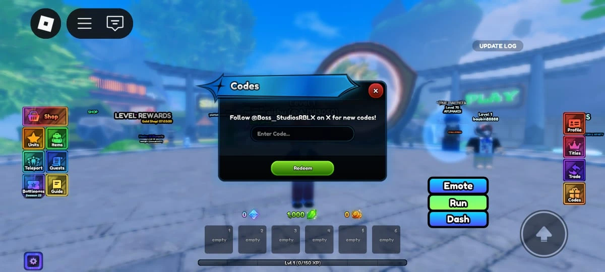 Redeeming codes in Anime Last Stand is simple and quick. Follow these steps