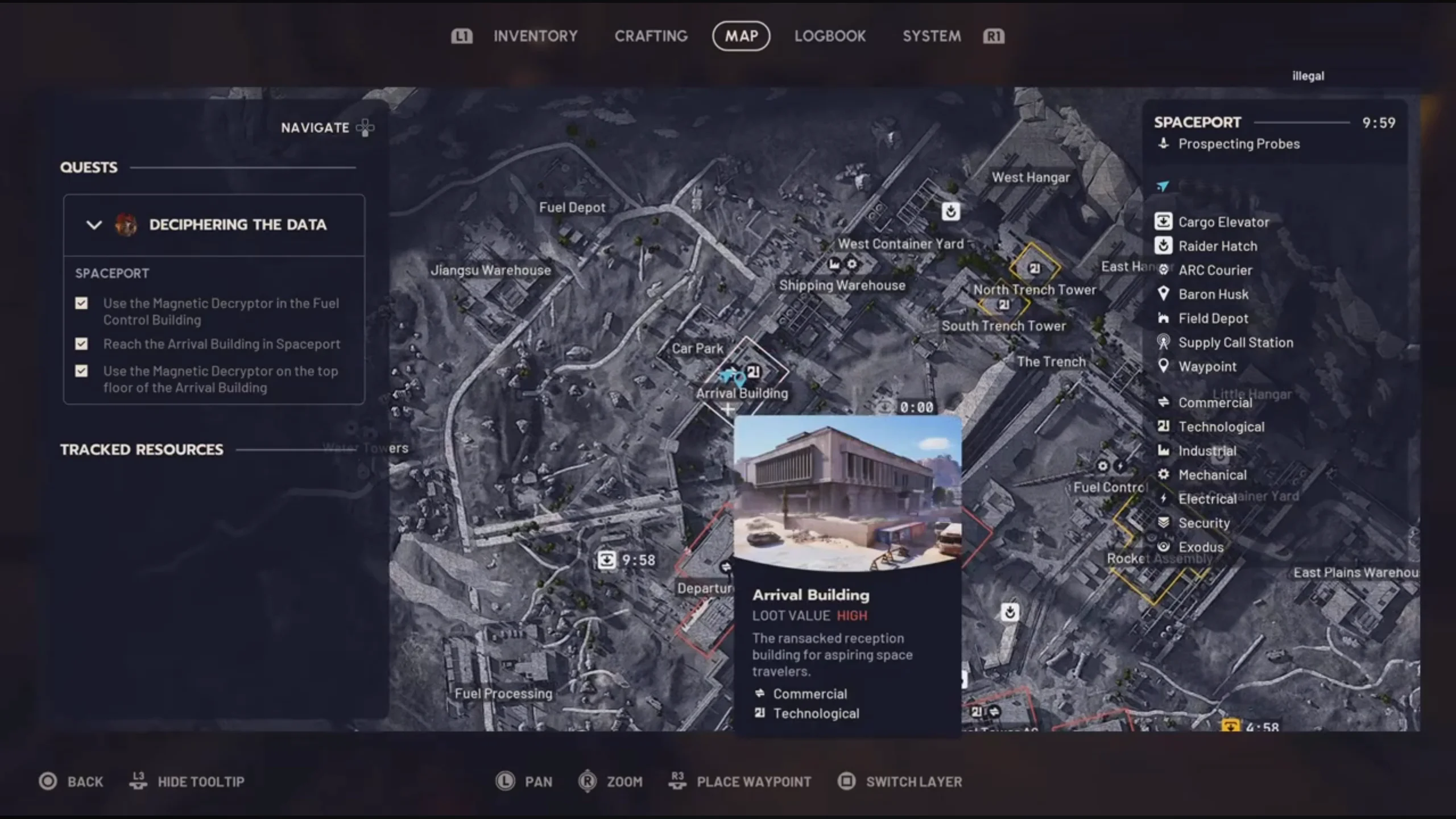 The Arrival Building is located on the eastern side of the Spaceport map.