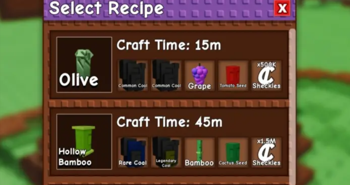 Each seed recipe requires coal, one base fruit or seed, and a sheckle cost. Once you have the ingredients, you can craft premium seeds that normally take a long time to obtain.