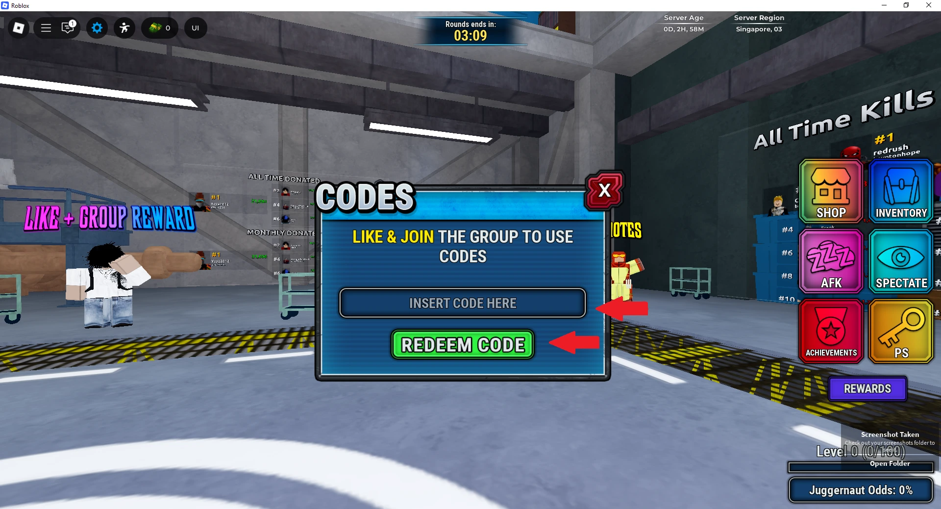 • If you’re trying while in battle, then the code option will not be available, since the code option only appears in the lobby