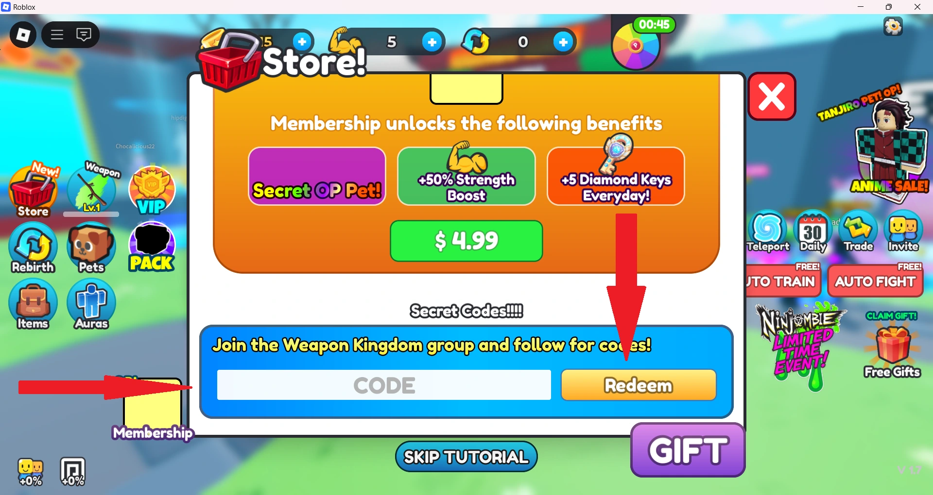 4. Type any active code into the box.