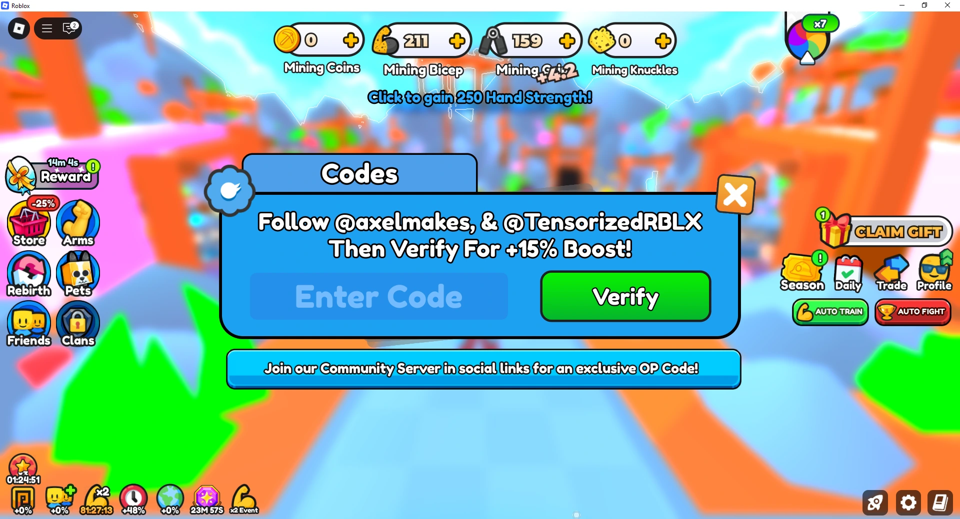 Follow these steps to redeem codes in Arm Wrestle Simulator: