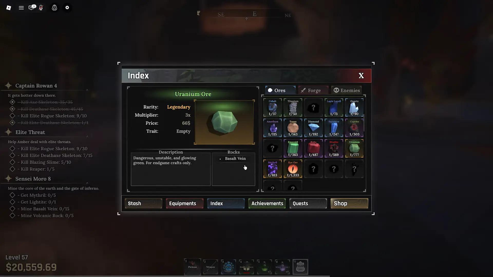 Uranium is one of the rarest and most valuable ores in The Forge, and it is required for crafting some of the strongest late game armor and equipment.
